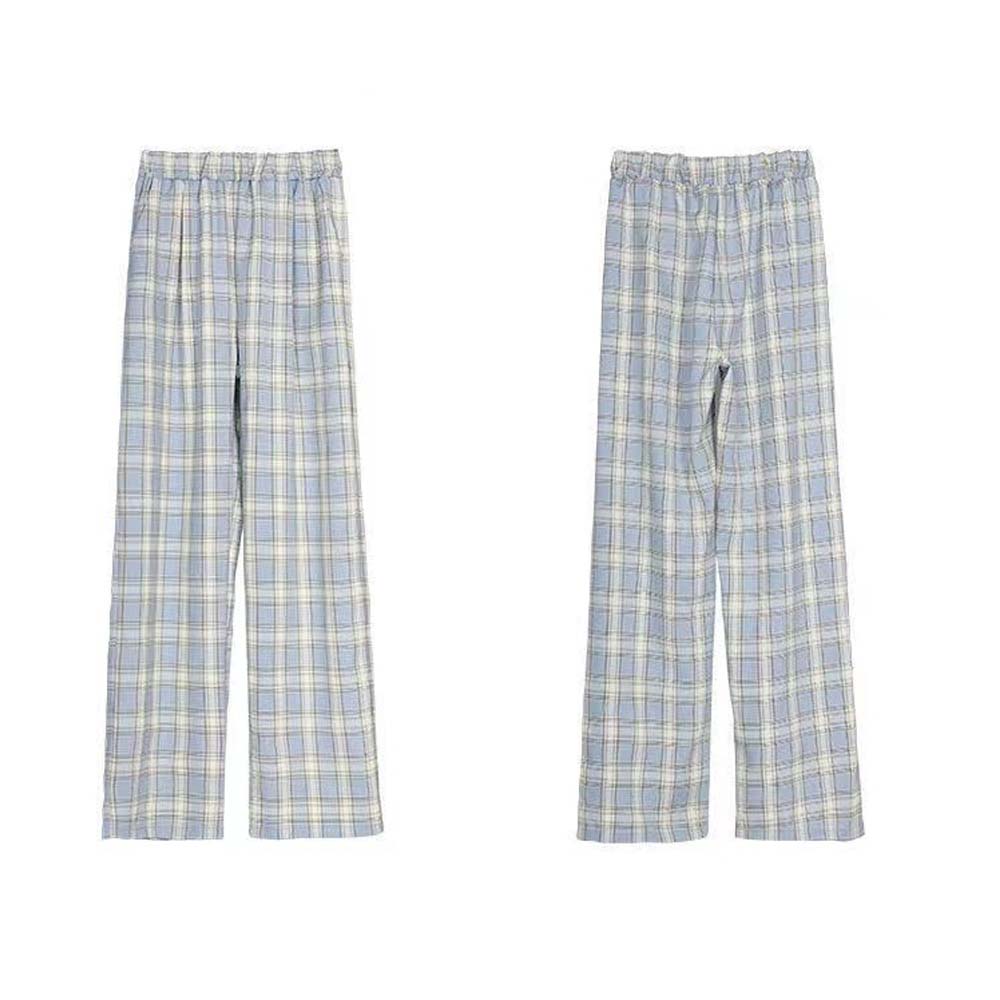 Plaid Fleece Pants Women's High Waist Straight Wide-Leg Pants